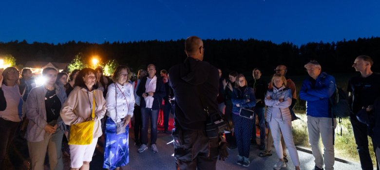 Ein besonderes Highlight war die feierliche Eröffnung der Lichtinstallation „Oberfranken leuchtet in Ahorn“. Projektleiter Michael Müller erläuterte den Gästen bei einem abendlichen Rundgang das gemeinsame Vorhaben von Oberfranken Offensiv und der Hochschule Coburg. Mehr als 250 Leuchten und fünf Kilometer Kabel setzen noch bis zum 29. Juni historische Orte vom Rathaus bis zur Alten Schäferei kunstvoll in Szene. Die Idee: Bekannte Orte neu erleben – in einem besonderen Licht.