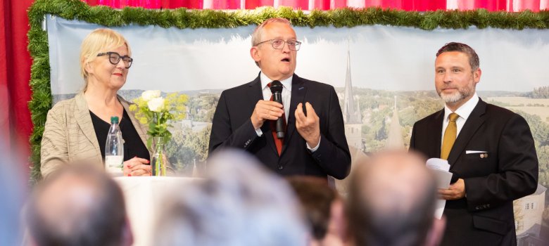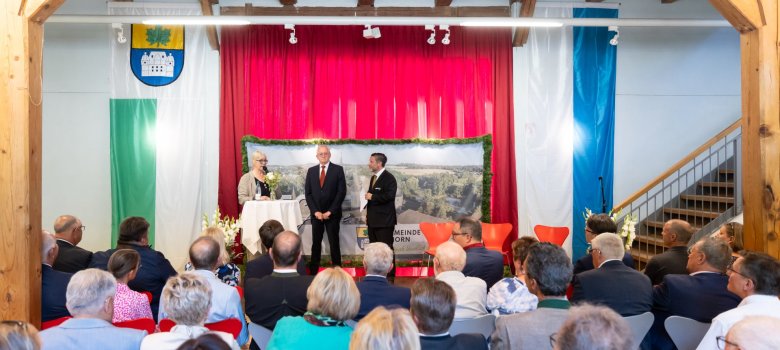 Den Auftakt machte ein feierlicher Empfang in der Alten Schäferei für geladene Gäste aus Politik, Verwaltung, Kirche, Gesellschaft und den Partnergemeinden Irdning-Donnersbachtal und Eisfeld. Bürgermeister Martin Finzel begrüßte die Anwesenden und betonte in seiner Ansprache, dass es gerade in bewegten Zeiten wichtig sei, Brücken zwischen Regionen und Menschen zu bauen: „Die Stärke unseres Gemeinwesens liegt in der Verbindung von Vergangenheit, Gegenwart und Zukunft.“ Das Jubiläum zeige eindrucksvoll, wie sehr Zusammenhalt, Engagement und Gemeinsinn das Leben in Ahorn prägen.